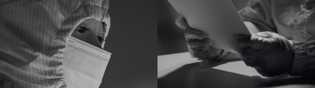 반도체와 화학 물질로부터 사람을 보호하는 것이 아니라, 사람의 손과 먼지로부터 반도체를 보호하는 기이한 풍경이다. 인간 존엄성과 재화 가치의 경계가 아슬아슬하게 무너진 산업사회 아래 노동자들은 누구에게도 보호받지 못한 채 무방비로 노출되어 있다.