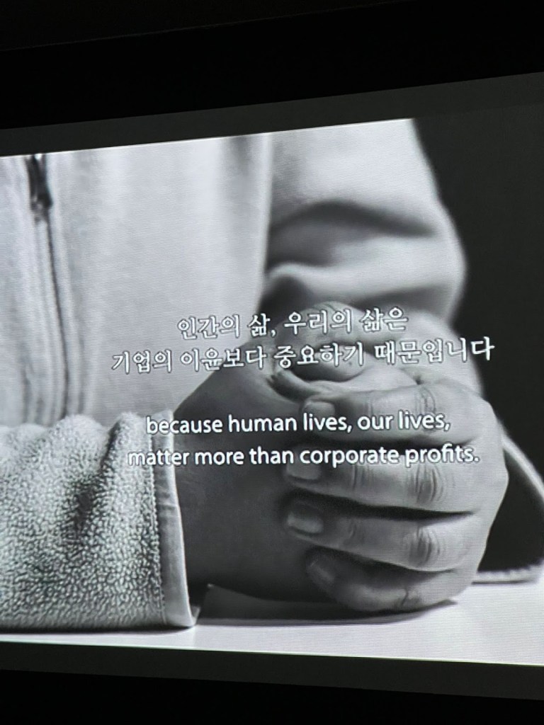 혹시 관람자로서 나는 작품 속 소재로 그들을 대상화하지 않았는지 돌이켜본다. 노동자의 고단함을 그린 영화에는 눈물을 흘리면서 시위로 인해 막히는 도로에서는 화를 내고 있지 않은가? 먼 나라 국민의 목소리는 귀 기울여 듣고, 우리 앞의 외침에는 눈과 귀를 막고 있지는 않은가.